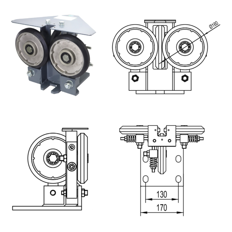 FKD-R160-1 엘리베이터 롤러 가이드 슈는 엘리베이터 시스템용으로 설계된 구성 요소입니다. 초당 5미터를 초과하지 않는 속도의 엘리베이터에 적합하고 최대 정격 하중 2000kg을 견딜 수 있으며 특히 폭 16mm의 가이드 레일 표면에 적합합니다. 롤러 가이드 슈즈는 엘리베이터의 원활한 작동과 정확한 안내를 보장하는 핵심 역할을 하며 엘리베이터의 안전과 효율성에 중요한 부분입니다.